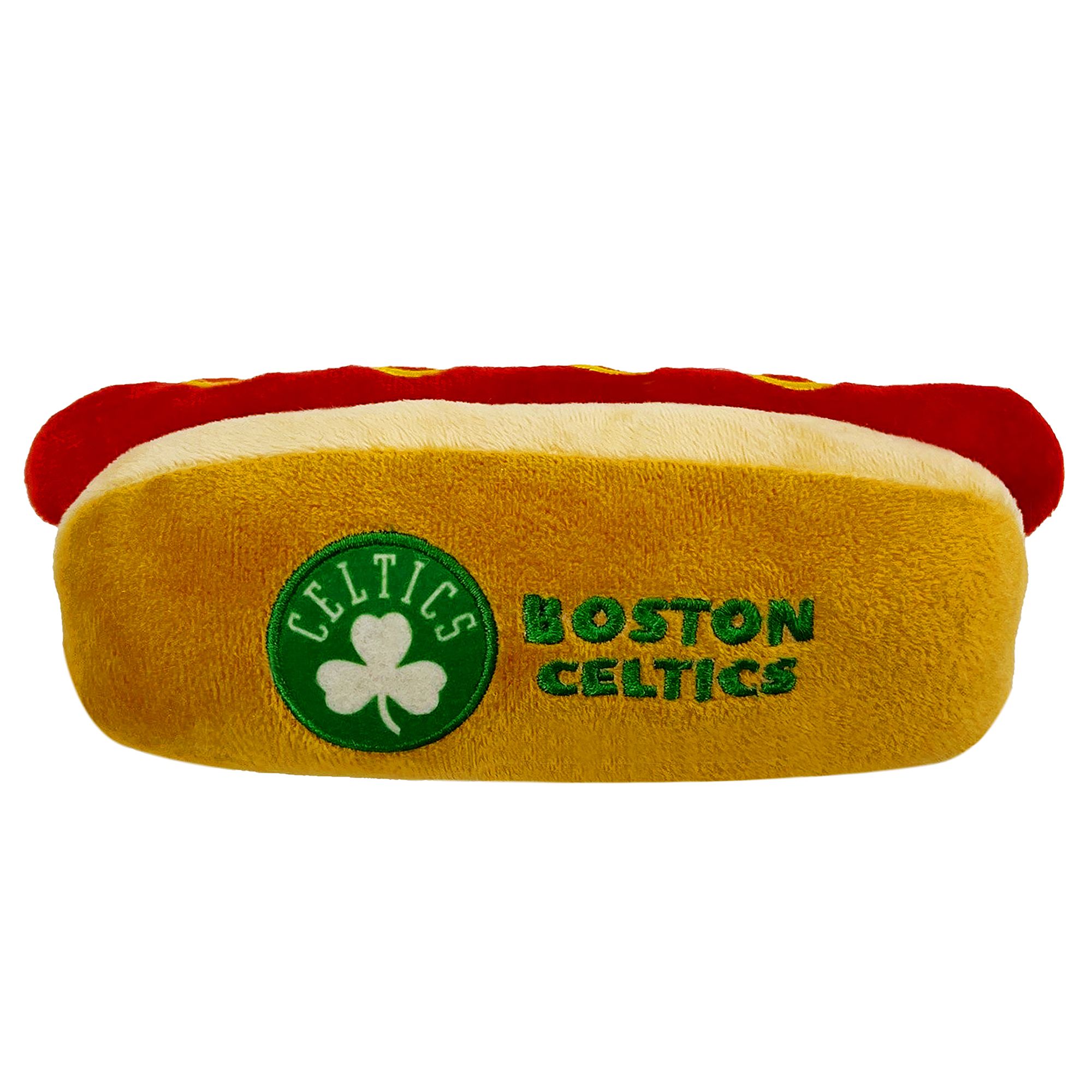 Bring the ballgame home to your furry friend with the Pets First Boston Red Sox Hot Dog Pet Toy. This fuzzy footlong looks just like the classic stadium snack and features your favorite team's logo. It's pawfect for long games of catch with your best bud! Each toy includes four squeakers for extra innings of play. Plus, it's made with ultra-soft fabric so your pup can snuggle up before the next game.