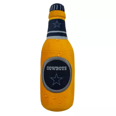 Bring the ballgame home to your furry friend with the Pets First Dallas Cowboys Bottle Dog Toy. This plush refreshment looks just like a classic stadium snack and features your favorite team's logo. It's pawfect for long games of catch with your best bud! Each toy includes four squeakers for extra innings of play. Plus, it's made with ultra-soft fabric so your pup can snuggle up before the next game.