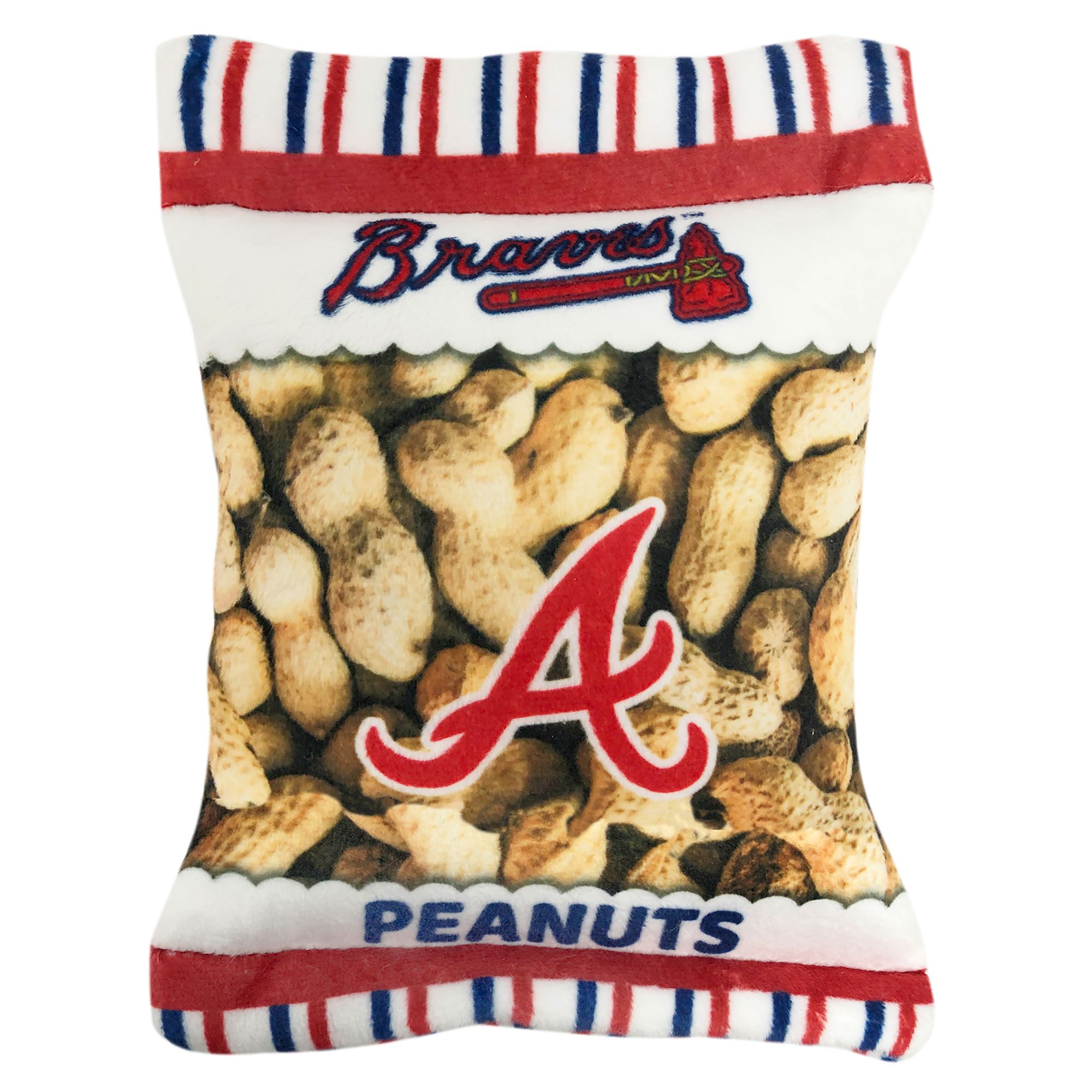 Bring the ballgame home to your furry friend with the Pets First Florida Gators Peanut Bag Dog Toy. This plush peanut bag looks just like the classic stadium snack and features your favorite team's logo. It's pawfect for long games of catch with your best bud! Each toy includes four squeakers for extra innings of play. Plus, it's made with ultra-soft fabric so your pup can snuggle up before the next game.