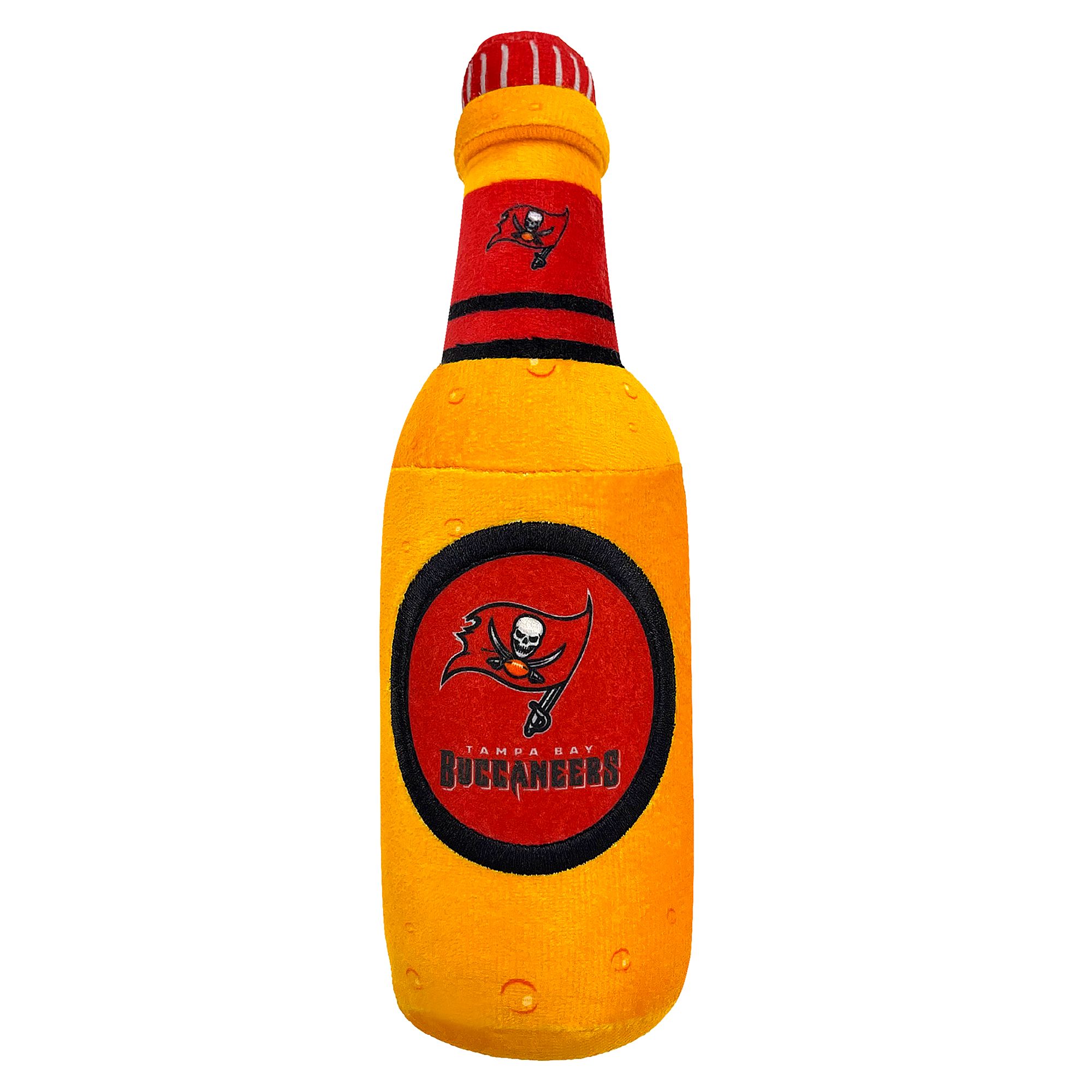 Bring the ballgame home to your furry friend with the Pets First Green Bay Packers Bottle Dog Toy. This plush refreshment looks just like a classic stadium snack and features your favorite team's logo. It's pawfect for long games of catch with your best bud! Each toy includes four squeakers for extra innings of play. Plus, it's made with ultra-soft fabric so your pup can snuggle up before the next game.