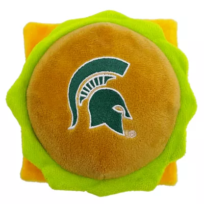 Bring the ballgame home to your furry friend with the Pets First Michigan State Spartans Hamburger Dog Toy. This big burger looks just like the classic stadium snack and features your favorite team's logo. It's pawfect for long games of catch with your best bud! Each toy includes four squeakers for extra innings of play. Plus, it's made with ultra-soft fabric so your pup can snuggle up before the next game.