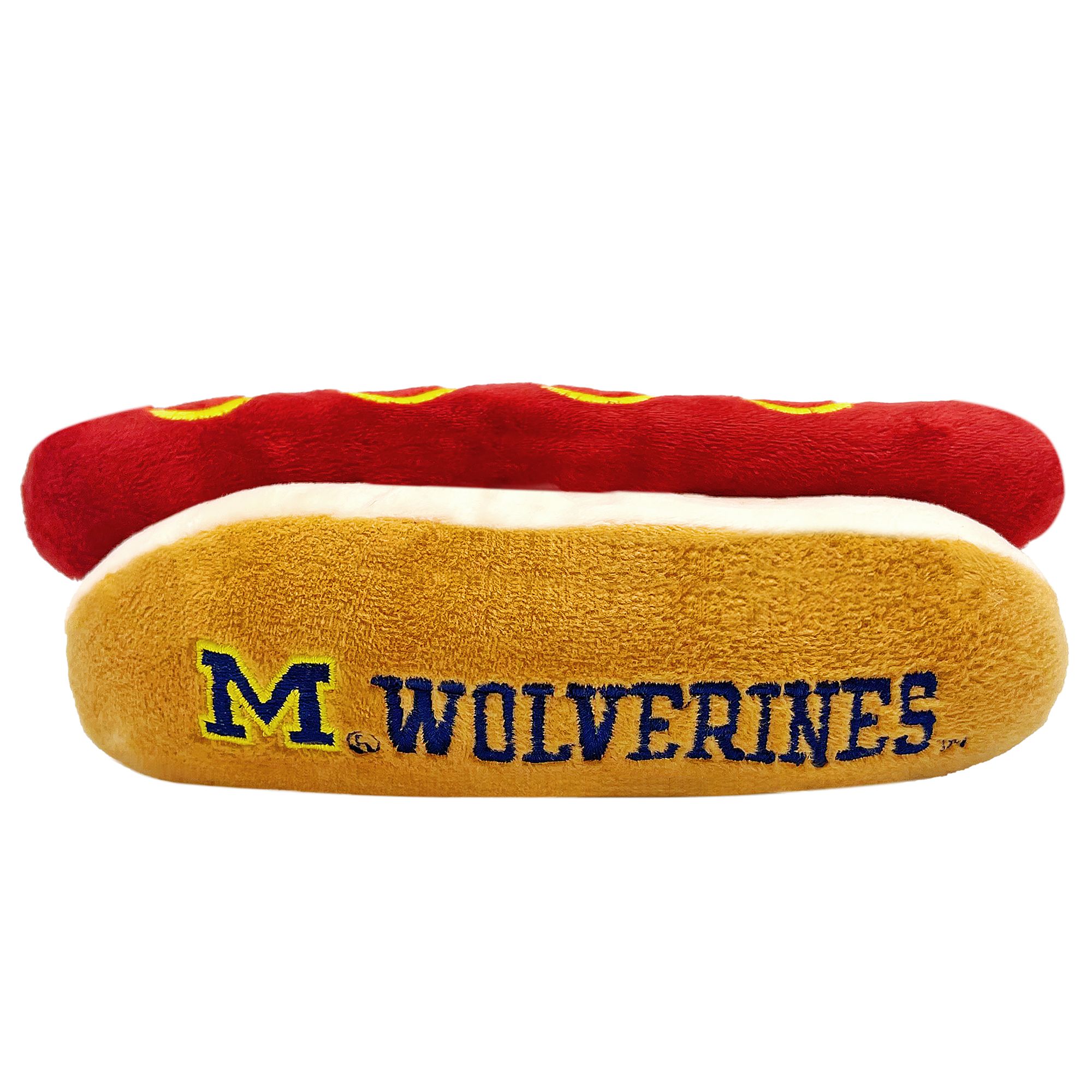 Bring the ballgame home to your furry friend with the Pets First Michigan State Spartans Hot Dog Pet Toy. This fuzzy footlong looks just like the classic stadium snack and features your favorite team's logo. It's pawfect for long games of catch with your best bud! Each toy includes four squeakers for extra innings of play. Plus, it's made with ultra-soft fabric so your pup can snuggle up before the next game.