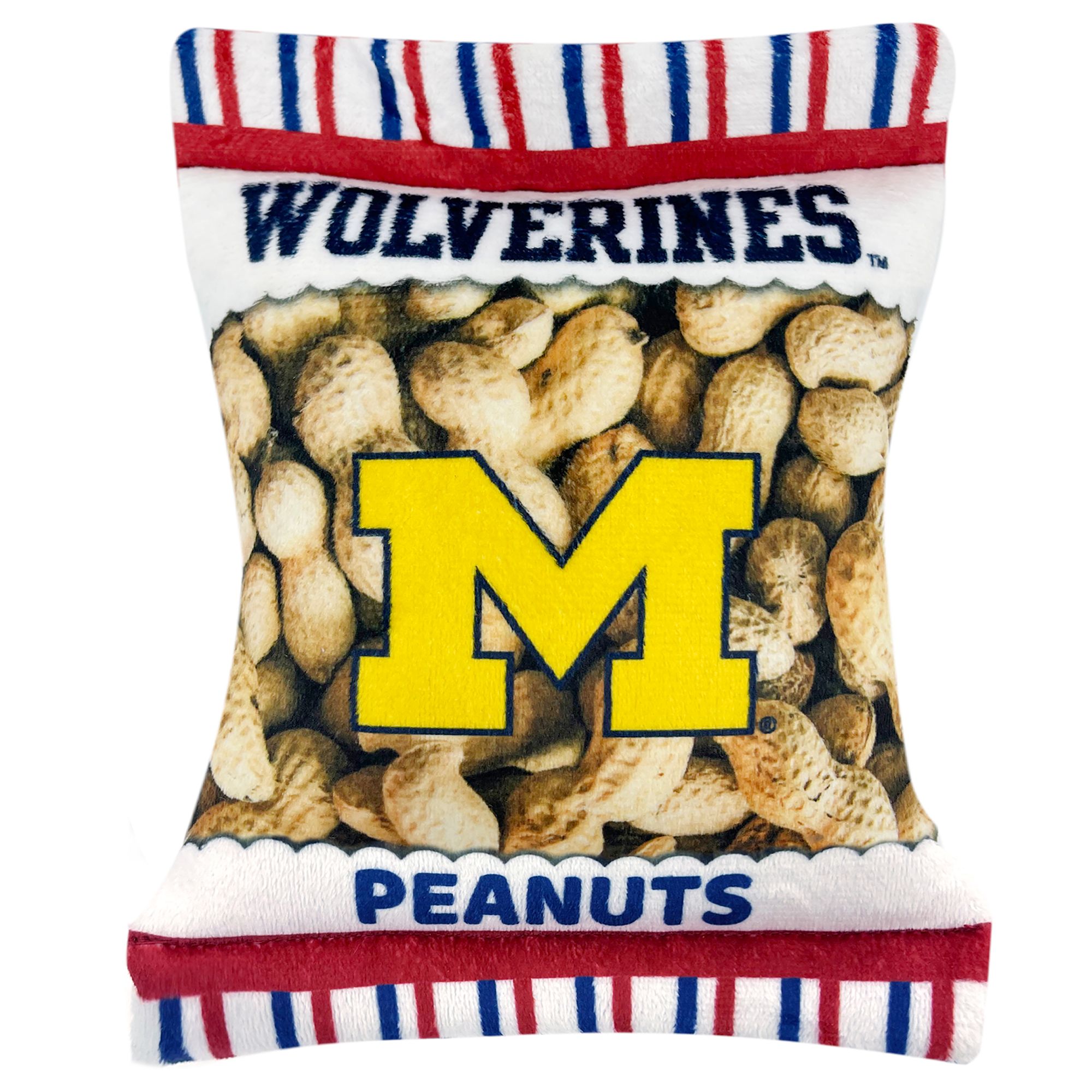 Bring the ballgame home to your furry friend with the Pets First Michigan State Spartans Peanut Bag Dog Toy. This plush peanut bag looks just like the classic stadium snack and features your favorite team's logo. It's pawfect for long games of catch with your best bud! Each toy includes four squeakers for extra innings of play. Plus, it's made with ultra-soft fabric so your pup can snuggle up before the next game.