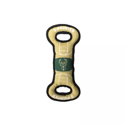 This Pets First NBA Milwaukee Bucks Court Toy is officially licensed by the NBA. Don't be fooled by other unlicensed, lower quality products. This pet toy features bright team logos and colors of your favorite NBA team. Built for tug, fetch & general fun with your dog! The two built-in handles make for an easy game of tug, while the built-in squeaker keeps your dog entertained & enthused about his/her toy!