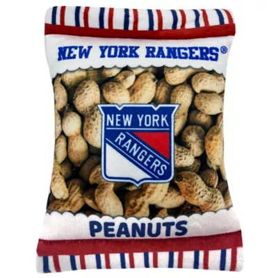 Bring the ballgame home to your furry friend with the Pets First New York Rangers Peanut Bag Dog Toy. This plush peanut bag looks just like the classic stadium snack and features your favorite team's logo. It's pawfect for long games of catch with your best bud! Each toy includes four squeakers for extra innings of play. Plus, it's made with ultra-soft fabric so your pup can snuggle up before the next game.