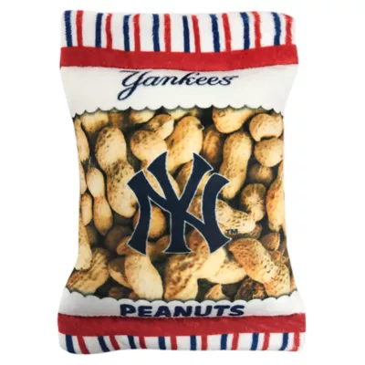 Bring the ballgame home to your furry friend with the Pets First New York Yankees Peanut Bag Dog Toy. This plush peanut bag looks just like the classic stadium snack and features your favorite team's logo. It's pawfect for long games of catch with your best bud! Each toy includes four squeakers for extra innings of play. Plus, it's made with ultra-soft fabric so your pup can snuggle up before the next game.