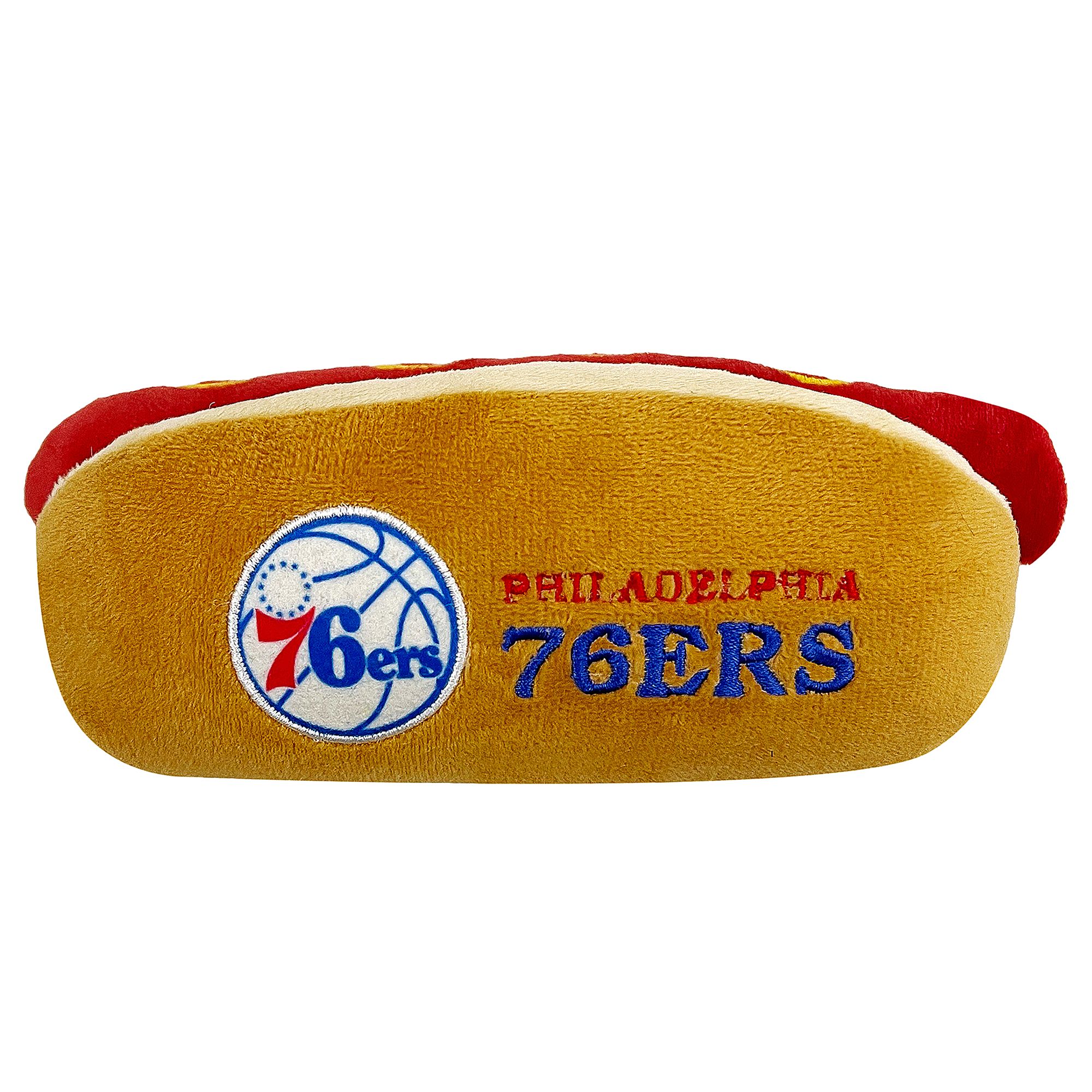 Bring the ballgame home to your furry friend with the Pets First Philadelphia Eagles Hot Dog Pet Toy. This fuzzy footlong looks just like the classic stadium snack and features your favorite team's logo. It's pawfect for long games of catch with your best bud! Each toy includes four squeakers for extra innings of play. Plus, it's made with ultra-soft fabric so your pup can snuggle up before the next game.