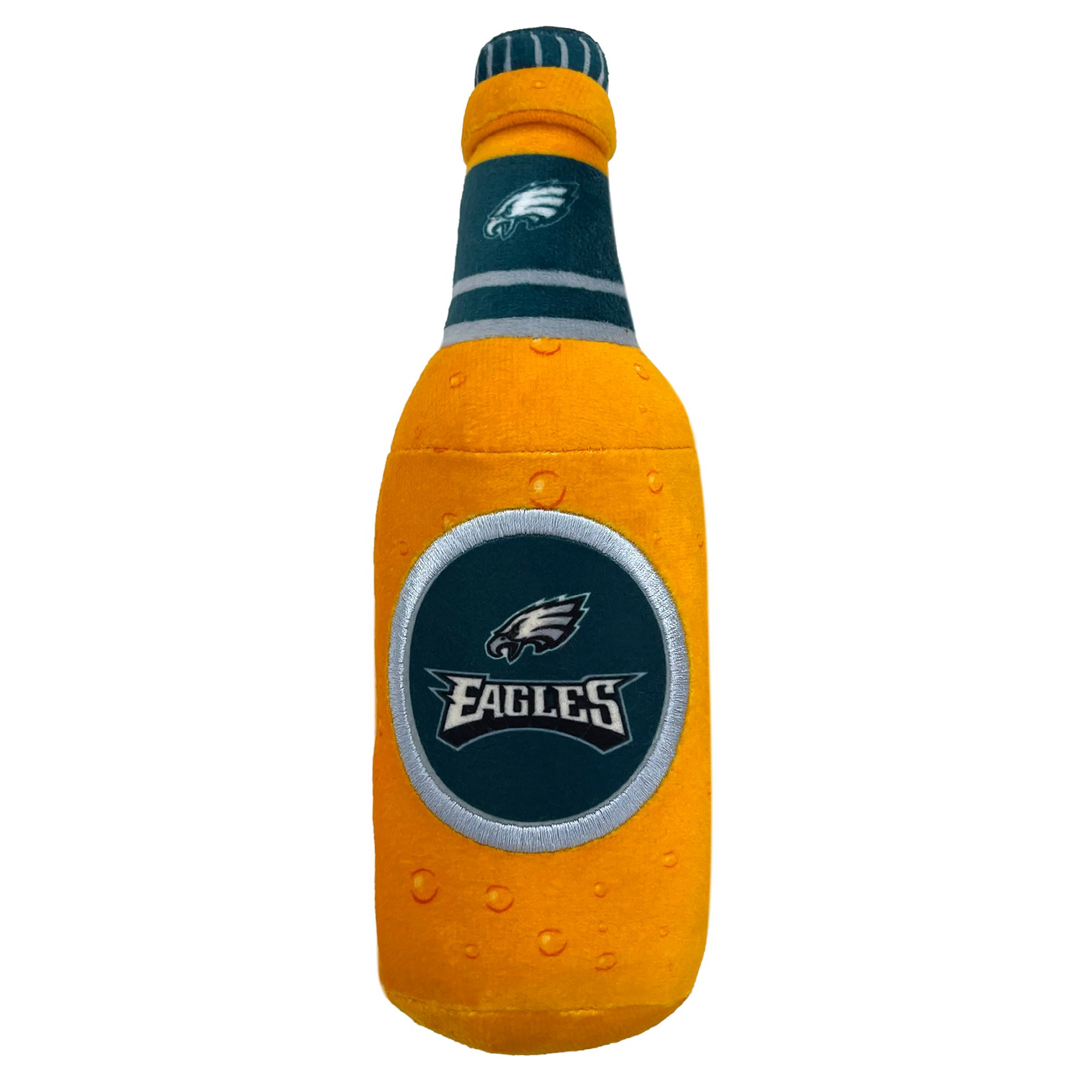 Bring the ballgame home to your furry friend with the Pets First San Francisco 49ers Bottle Dog Toy. This plush refreshment looks just like a classic stadium snack and features your favorite team's logo. It's pawfect for long games of catch with your best bud! Each toy includes four squeakers for extra innings of play. Plus, it's made with ultra-soft fabric so your pup can snuggle up before the next game.