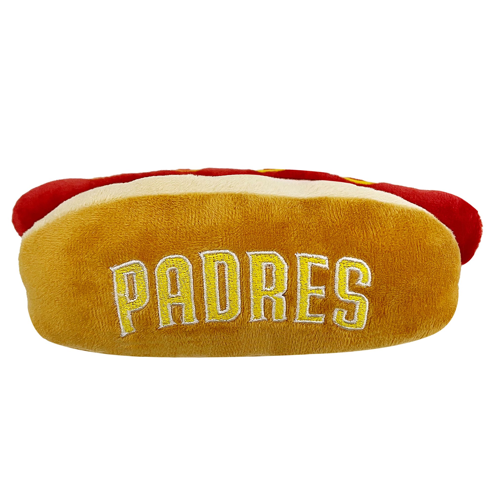 Bring the ballgame home to your furry friend with the Pets First San Francisco 49ers Hot Dog Pet Toy. This fuzzy footlong looks just like the classic stadium snack and features your favorite team's logo. It's pawfect for long games of catch with your best bud! Each toy includes four squeakers for extra innings of play. Plus, it's made with ultra-soft fabric so your pup can snuggle up before the next game.