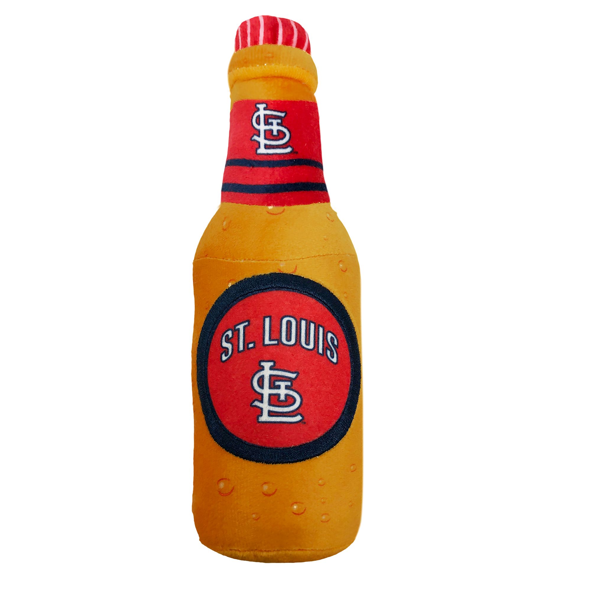 Bring the ballgame home to your furry friend with the Pets First St. Louis Blues Bottle Dog Toy. This plush refreshment looks just like a classic stadium snack and features your favorite team's logo. It's pawfect for long games of catch with your best bud! Each toy includes four squeakers for extra innings of play. Plus, it's made with ultra-soft fabric so your pup can snuggle up before the next game.