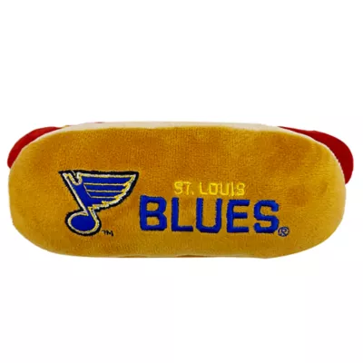 Bring the ballgame home to your furry friend with the Pets First St. Louis Blues Hot Dog Pet Toy. This fuzzy footlong looks just like the classic stadium snack and features your favorite team's logo. It's pawfect for long games of catch with your best bud! Each toy includes four squeakers for extra innings of play. Plus, it's made with ultra-soft fabric so your pup can snuggle up before the next game.