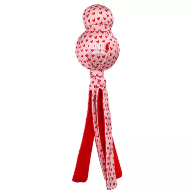 Description and Overview: KONG Valentines Wubba features a long, floppy tail to ignite shaking instincts, adding fun and excitement to tugging and fetching sessions! The long tails also make it easy to pick up. While this toy is made with reinforced fabric and stitching for added durability, it's still gentle on dogs' teeth. Our heart–patterned Valentines Wubba is perfect for both interactive and solo play–complete with a squeaker to keep playtime lively and engaging. Plus, it makes a wonderful Valentine's gift for that special dog in your life, letting them know how much you love them.