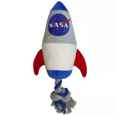 Your pup will love the time it spends playing with this Pets First NASA Rocket Rope Dog Toy. This fun rope toy is NASA rocket-themed, is tough enough to stand up to vigorous chewing, and is perfect for interactive games of tug and fetch as well. Plus, it keeps dogs active and entertained with the playful squeaking sounds it makes when played with.