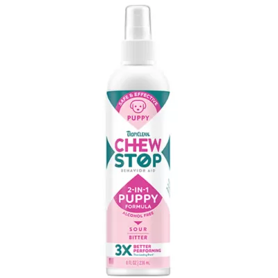 Description and Overview: Chew Stop Behavior Aid. 2–in–1 technology, this spray offers double–layered protection with bitter and sour that effectively deter unwanted behaviors. Effective, safe, prevents. Spray Away Bad Habits