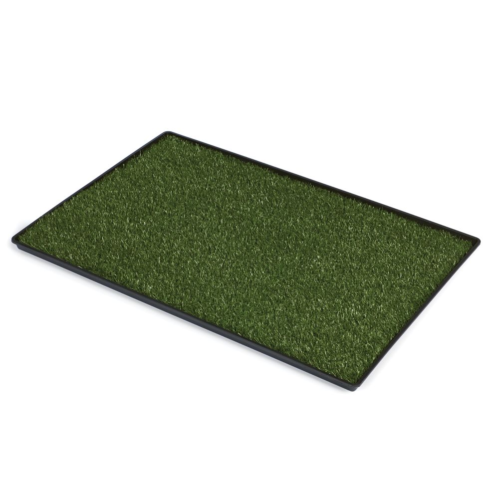 DESCRIPTION Prevue Pet Products Replacement Turf is compatible exclusviely with our Tinkle Turf system. Tinkle Turf creates a designated potty area for your pet – perfect for when going outdoors is not an option! Perfect for use while primary turf is being cleaned/dried, replacement turf is certified lead-free synthetic grass, protected with antimicrobial odor control. Soft, realistic quality turf is ½" in height and constructed with a flow-through backing material, allowing liquid to drain into the tray base. Do not use harsh detergents or cleaners for turf. Hand wash or brush with warm water and mild dish washing liquid, and rinse thoroughly. Let turf air dry fully before replacing in tray. Turf is not machine washable. Do not place turf in washing machine or dryer. Available in three sizes.