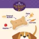 Ingredients: Whole Wheat Flour, Oatmeal, Wheat Bran, Chicken Fat, Crunchy Peanut Butter, Apples, Carrots, Cane Molasses, Eggs, Salt, Natural Peanut Flavor, Mixed Tocopherols added to preserve freshness, Rosemary Extract, Green Tea Extract, Spearmint Extract.