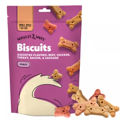 Make treat time special for pup with the great flavor of Wiggles & Wags Biscuits Dog Treats. These crunchy and tasty treats feature the great assorted flavors of beef, chicken, turkey, bacon and sausage for a treat time option that will keep your pup coming back for more. Pure tail-wagging joy, one treat at a time. Pure tail-wagging joy, one tasty treat at a time. Only at PetSmart.