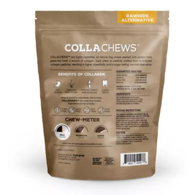 Collachews Peanut Butter Sticks are healthy, all natural, rawhide free alternative dog chews that feature beef + collage as the #1