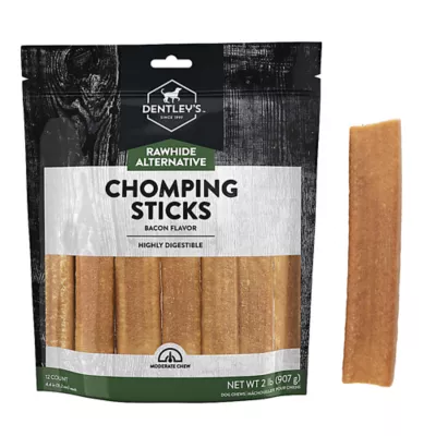 Satisfy your dog's innate urge to chew with Dentley's Rawhide Alternative Chomping Sticks. These moderate chews offer a wonderful alternative to rawhide, and are highly digestible. Best of all as far as your dog is concerned, they feature delicious bacon flavor that makes happily chewing the day away an even more delectable experience. Only at PetSmart.