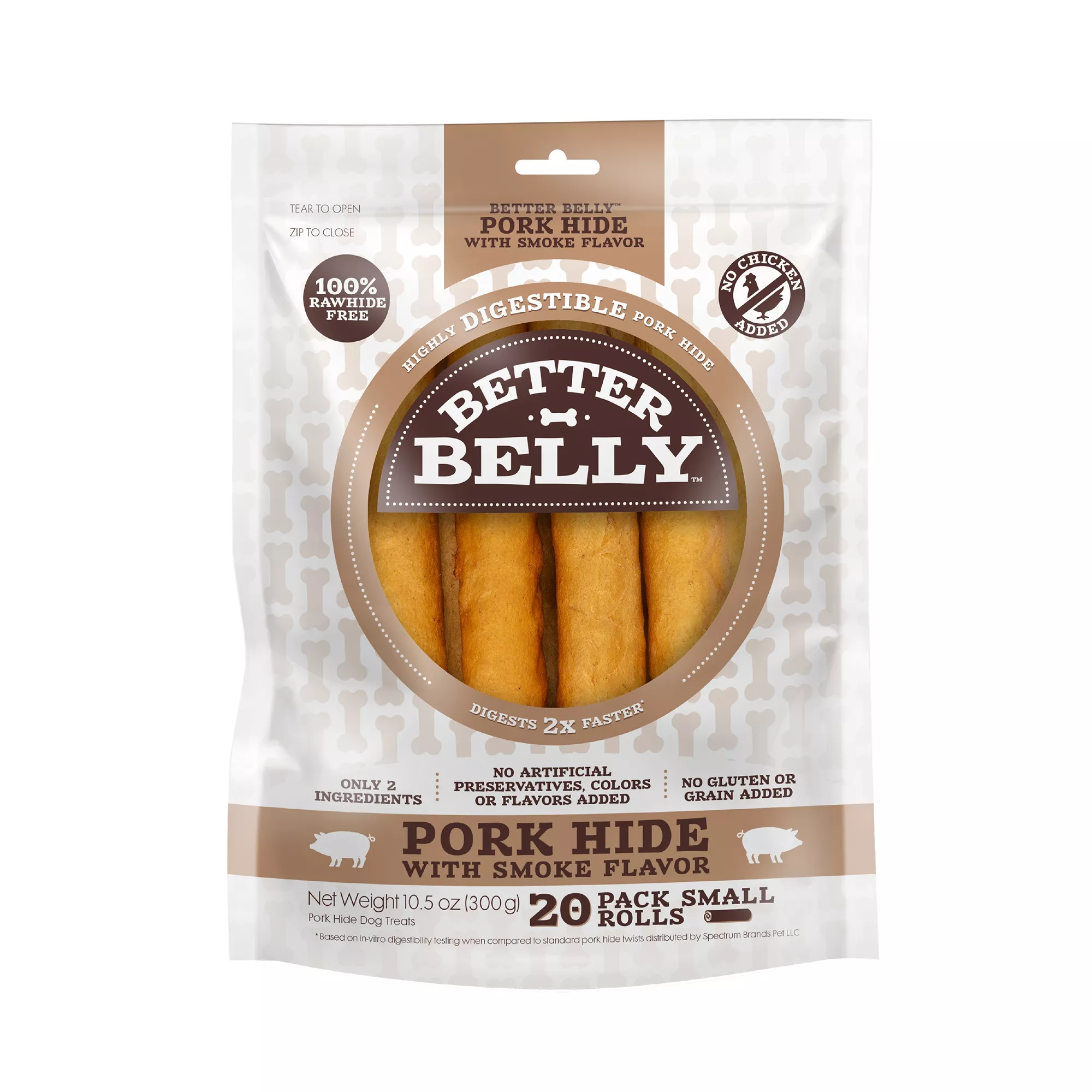 Better Belly All Life Stages Highly Digestible Small Pork Hide Rolls Dog Chew - Smoked Pork 10.5 oz