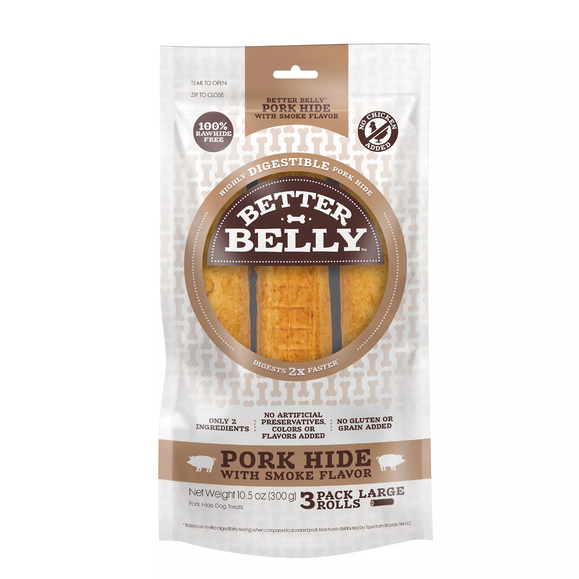 Better Belly All Life Stages Highly Digestible Large Pork Hide Rolls Dog Chew - Smoked Pork 10.5 oz
