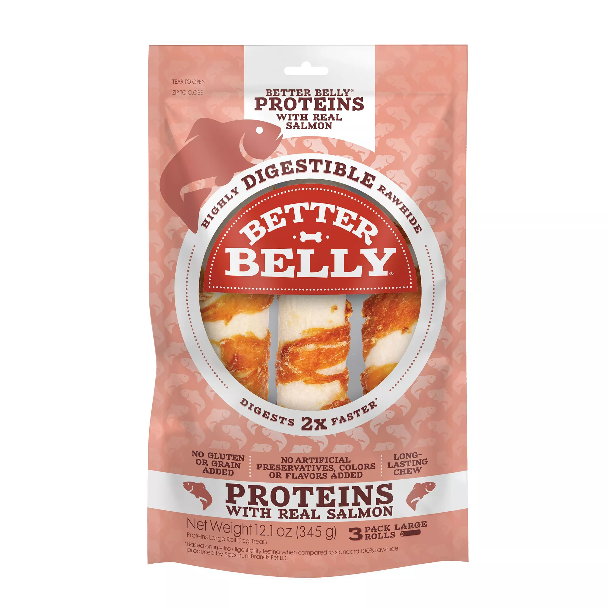 Better Belly All Life Stages Highly Digestible Large Rawhide Dog Chew - Salmon Wrapped 12.1 oz
