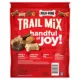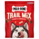 Treat your dog to a handful of joy. Milk-Bone Trail Mix dog snacks are a mixture of crunchy dog biscuits and chewy dog treats that add variety to treat time. These bite sized treats are made with real beef and sweet potato for mouthwatering flavors your dog will love. They're a mix of fun shapes and textures, and theyâre the perfect size for treating more often. Plus, they're made with no artificial flavors and produced right here in Topeka, KS. Try a bag and give your dog more chewy, crunchy, and tasty excitement at home or on the go.