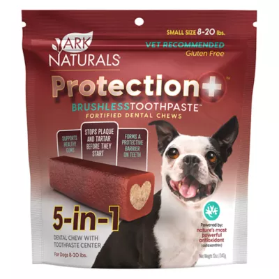 Ark Naturals Protection+ Brushless Toothpaste is the only dental chew that stops plaque and tartar before they start! Powered by nature's most powerful antioxidant: Astaxanthin. Astaxanthin stops plaque and tartar before it can even start by boosting the antibody immunoglobulin A (lgA) in the saliva, therefore creating a protective barrier on teeth! Our unique 5-in-1 dental chews have a toothpaste center with active ingredients and natural breath fresheners such as cinnamon, clove and vanilla. Our dental chews also support gums with antioxidant power and form a protective barrier to support healthy teeth.