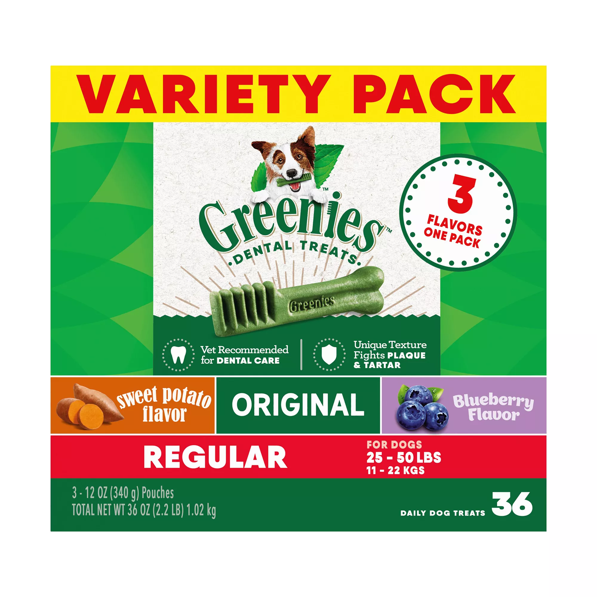 Greenies Triple Flavor Dental Treat Variety Pack 36 OZ