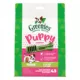 Description: 80% of dogs have dental disease by the age of 3, according to the American Veterinary Medical Association. Start your puppy off with a healthy habit with Greenies Dental Puppy Treats. These veterinarian-recommended dental chews for dogs are crafted to support the 4 areas veterinarians check most: plaque, tartar, gums, & breath. Your pup can't wait to sink their teeth into these delicious dog dental chews that help keep their teeth clean and breath fresh. These dog chews have a unique design that works like a toothbrush to clean down to the gumline to support dog dental care. These chewy dog treats are made with natural ingredients plus vitamins, minerals & nutrients. Made for a puppy 6 months+ between 5-15 lbs., Greenies Dental Puppy Treats are crafted with DHA to support brain development and are made with calcium to support strong teeth and healthy jaws. Greenies dental chews for dogs are a safe way to treat your puppy because they're rawhide-free, easy to chew and digest, and bendable