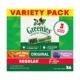- Variety Pack: Contains three (3) 12 oz. packs of Greenies Dental Care Dog Treats Regular Size (1) 12 oz. pouch of Original Flavor, (1) 12 oz. pouch of Sweet Potato Flavor, and (1) 12 oz. pouch of Blueberry Flavor, 36 Count.