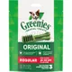 Perfect Dog Treats For Daily Dental Care: Greenies natural dog teeth cleaning treats are crafted to support the 4 areas veterinarians check most: plaque, tartar, gums, & breath and are made with natural ingredients plus vitamins, minerals & nutrients.Veterinarian–Recommended Dog Dental Treats: Greenies Dental Dog Treats are veterinarian–recommended dental treats for dogs that clean teeth and freshen breath.Dental Chews For Dogs Fights Tartar: Including Greenies teeth cleaning dog treats in your daily dog dental care can help get your puppy into a healthy habit.Clinically Proven Dog Teeth Cleaning Treat: This dog dental chew offers clinically proven dog dental care to help maintain your four–legged friend's oral hygiene.Unique Texture For Dog Teeth Cleaning: Made for a dog between 25–50 lbs., these Greenies dog treats have a unique design that cleans down to the gumline with a taste your dog will love.Oral Hygiene Chews For Dogs: Greenies dog dental treats positively balance the oral microbiome to help support whole–body health.3 oz. Pack: Contains one (1) 3 oz. pack of Greenies Adult Dental Dog Treats Regular Size, Original Flavor, 3 Count.Species: Dog