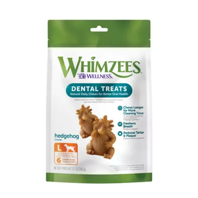 Give your dog one WHIMZEES by Wellness per day and you're giving them a fun, all-natural way to help clean teeth, freshen breath, and reduce plaque and tartar - all while they chew! Dental disease is the number one health issue for dogs, affecting 80% of adult dogs and 96% of senior dogs. That's why we believe it's more important than ever to take an active role in your pup's at-home dental care. What separates WHIMZEES by Wellness from the pack? Designed by our team of pet health experts, WHIMZEES by Wellness are scientifically proven to help control plaque and tartar, improve breath odor, and decrease gingivitis. Our treats clean two times better than a leading competitor*, and deliver three times longer chew time*#. A longer chew time means a longer cleaning time - all to support your dog's dental health. You brush daily, your dog should too! *Based on studies of comparable products conducted by an independent kennel. #Excludes Veggie Sausage, Veggie Strip, and Puppy varieties.