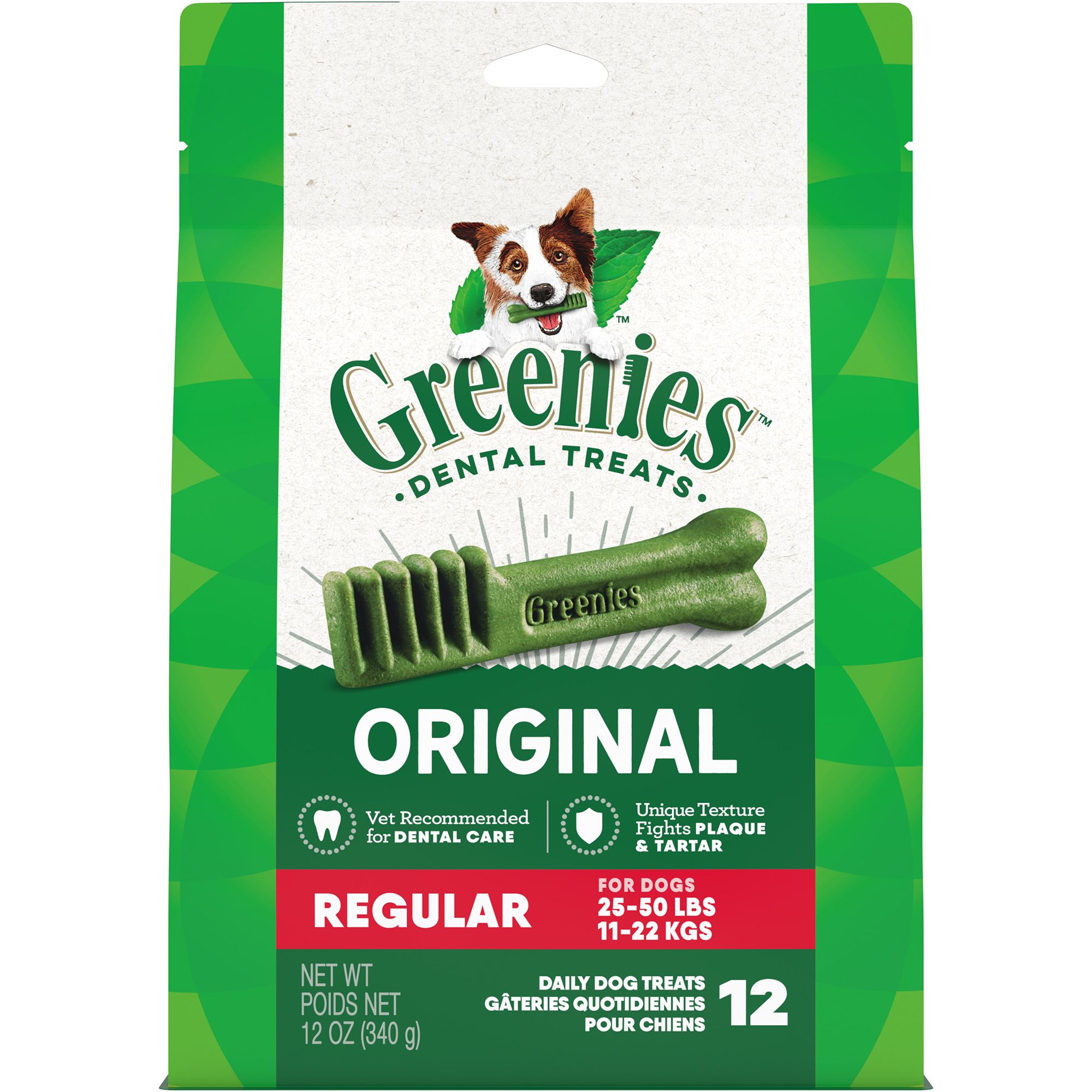 - 12 oz. Pack: Contains one (1) 12 oz. pack of Greenies Adult Dental Dog Treats Regular Size, Blueberry Flavor, 12 Count.