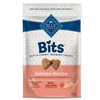 DESCRIPTION Blue Buffalo BLUE Bits are heart-shaped, bite-sized dog training treats. They are soft, moist, and tasty and perfect for small, medium, and large dogs of all life stages - from puppies to senior dogs. Packed with delicious, high-quality, real turkey as the first ingredient, plus DHA to support cognitive development, BLUE Bits are a healthy, natural, and nutritious reward that your furry best friend will love.