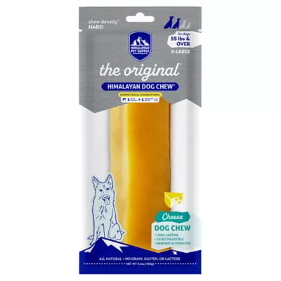 The Himalayan Dog Chew was born from an ancient recipe for a hard cheese snack chewed by the people of the Himalayans. In the mountains surrounding Mt. Everest at more than 15,000 feet, it is made using traditional methods with yak and/or cow milk, and all natural products with no preservatives or binding agents. They're also gluten free! Depending on the size and eating habits of the dog, this can be a very long-lasting dog chew. Dogs must work the end of the treat for hours, softening it with their mouths before small parts of it can be slowly chewed off. When you give this treat to your dog, you know that you are providing them with high-quality eating entertainment. You can even microwave the end pieces on high power for 30 second to 2 minutes* to create a cheesy puffed treat! *Never leave your microwave unattended and be careful to not over puff cheese. ALWAYS allow cheese to cool for at least two minutes before giving to your dog.
