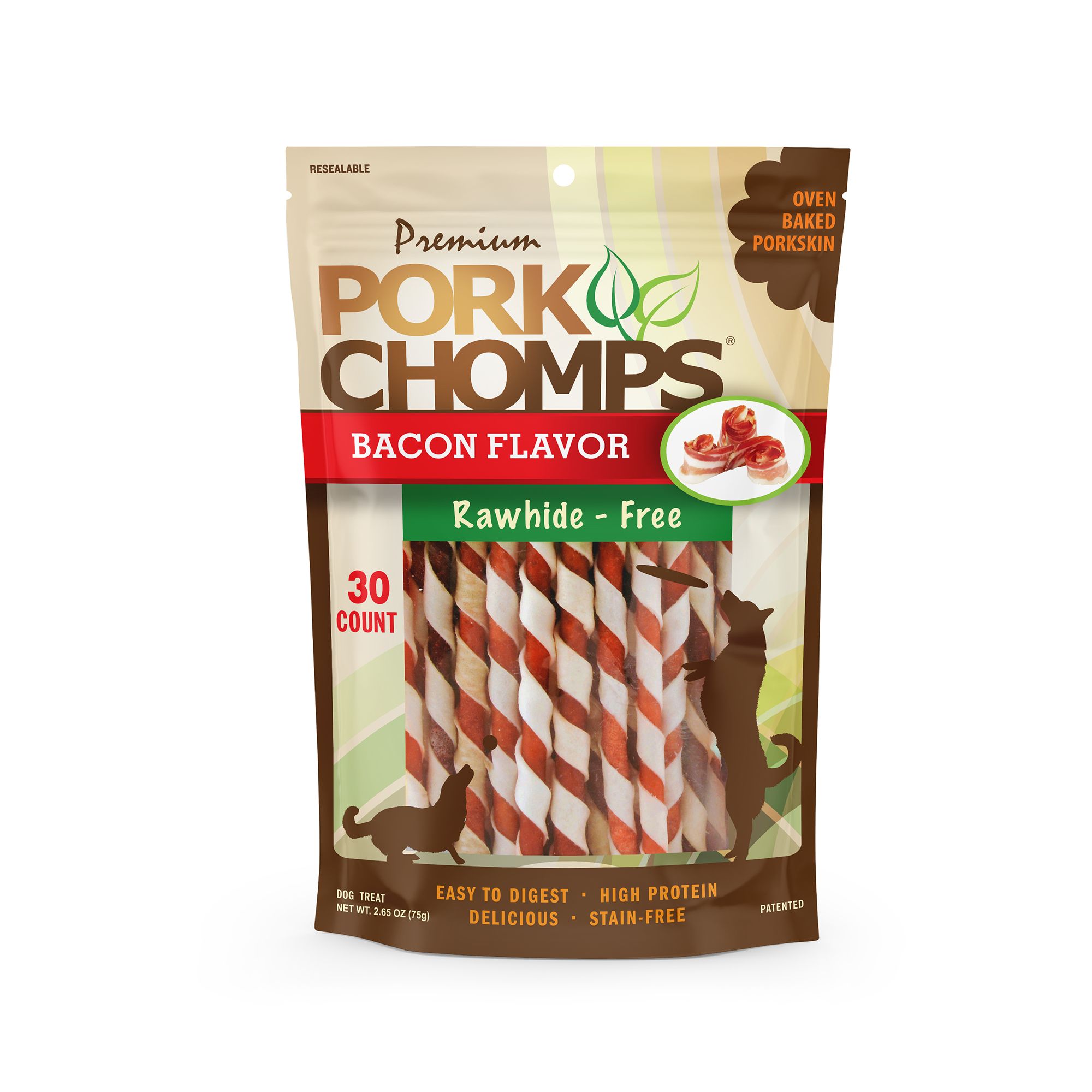 Let your dog satisfy his urge to chew with Pork Chomps Roasted Pork Ribs. These rawhide-free treats made of oven-roasted pork skin taste delicious and are easy to digest. High in protein, they are also stain-free and offer hours and hours of chewing fun.