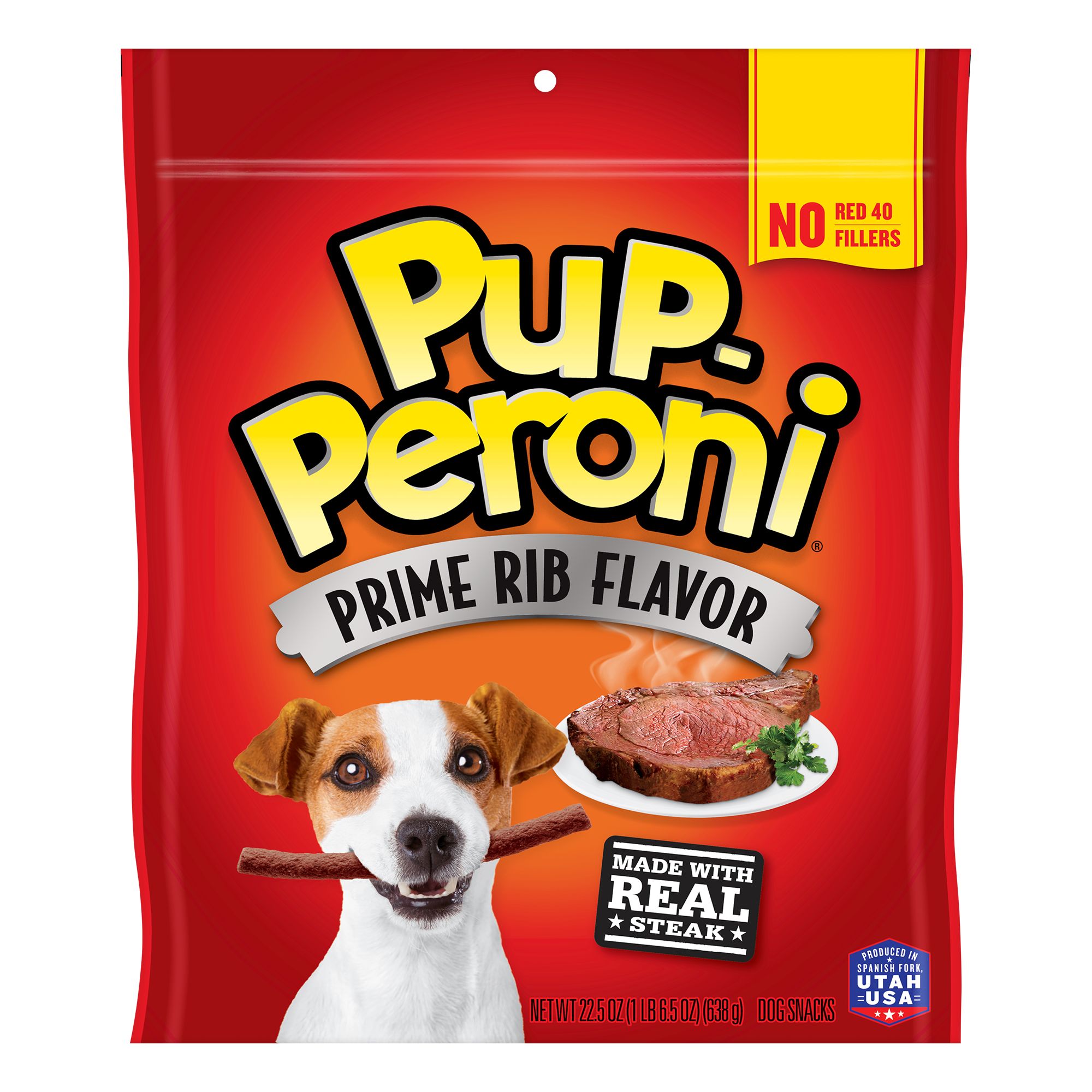 Contains one (1) 22.5 oz. bag of Pup-Peroni Triple Steak Flavor soft dog treats made with real steak. Slow cooked for a tender texture and rich, meaty taste your dog will love. Ribeye, top sirloin and New York strip flavors. Real beef is the number 1 ingredient. Produced in USA facilities with no Red 40 and no fillers.