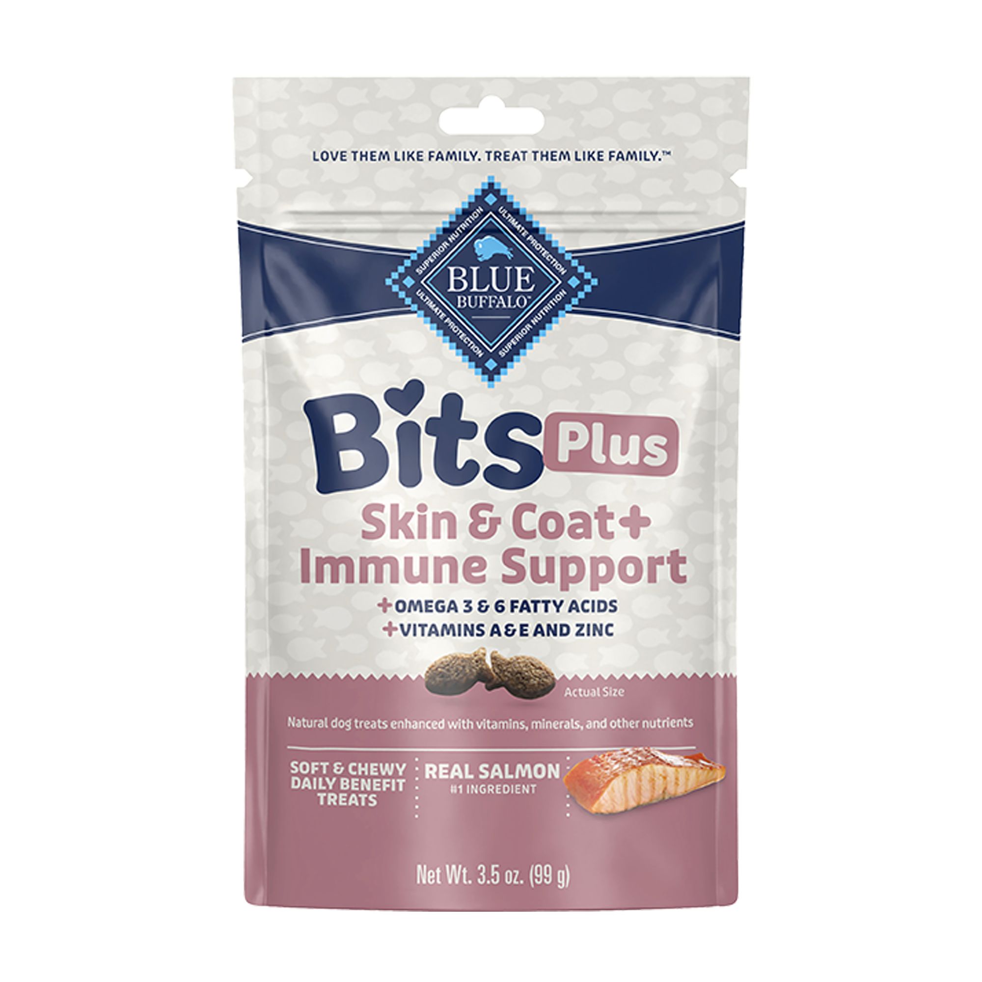 Features & Benefits: 1. DIGESTIVE SUPPORT: BLUE Bits Plus soft and chewy dog treats contain real pumpkin and prebiotic fiber to support healthy digestion2. IMMUNE SUPPORT: BLUE Bits Plus soft and chewy dog treats contain Vitamin A, Vitamin E, and Zinc for immune support3. MADE WITH REAL CHICKEN: Starting with USA–sourced chicken, these soft and chewy dog treats are the perfect size for regular treating5. HEALTHY DOG TREATS: Blue Buffalo BLUE Bits Plus natural dog treats are made with no chicken (or poultry) by–product meals and no corn, wheat, or soy6. INCLUDED IN PACKAGE: Contains one (1) 3.5 oz. Bag of BLUE Bits Plus Digestion and Immune Support Soft and Chewy Dog Treats, Chicken7. ENHANCED IMAGERY: We have enhanced our digital product packaging to highlight our products' ingredients and essential benefits. While the physical packaging will differ slightly, all information is accurate.