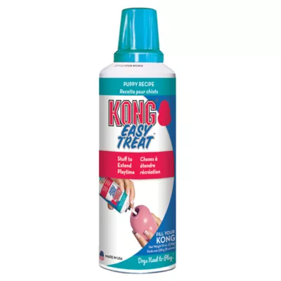 KONG STUFF'N Puppy Easy Treat Paste is uniquely formulated to meet the needs of puppies. Your puppy will love the chicken liver flavor, while as a pet parent you will love this no-mess treat solution. The unique nozzle makes it easy to control how much you serve, and to stuff with ease. This treat is also great for crate training. Add KONG Puppy Easy Treat to your Puppy KONG stuffing for an enjoyable in-crate experience.
