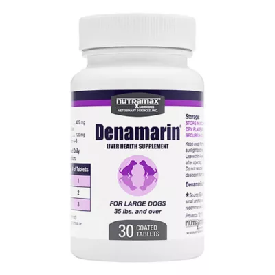 Description and Overview: Denamarin coated tablets containing SAMe (s–adenosylmethionine) and silybin can be used in dogs and cats of all sizes to help support healthy liver functions. In addition, research has shown the administration of Denamarin coated tablets to be safe for dogs. Denamarin Liver Health Supplements are brought to you by Nutramax Laboratories Veterinary Sciences, the #1 veterinarian recommended supplement company. *Source: Survey conducted among small animal veterinarians who recommended animal supplements.