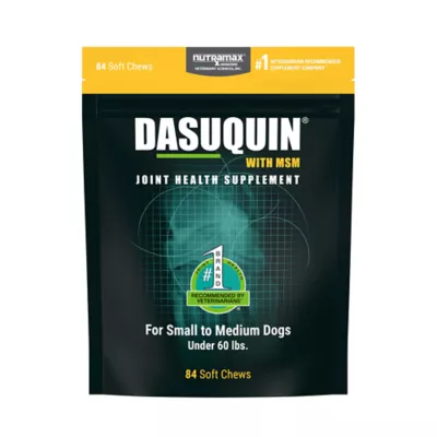 Dasuquin with MSM Soft Chews for Small/Medium Dogs is a premium joint health supplement that contains the combination of glucosamine hydrochloride, chondroitin sulfate and avocado/soybean unsaponifiables (ASU) to help support your pet's joints. Each soft chew also contains methylsulfonylmethane (MSM), a source of sulfur, which helps support joint health. Dasuquin joint health supplements are brought to you by Nutramax Laboratories Veterinary Sciences, the #1 veterinarian recommended supplement company.
