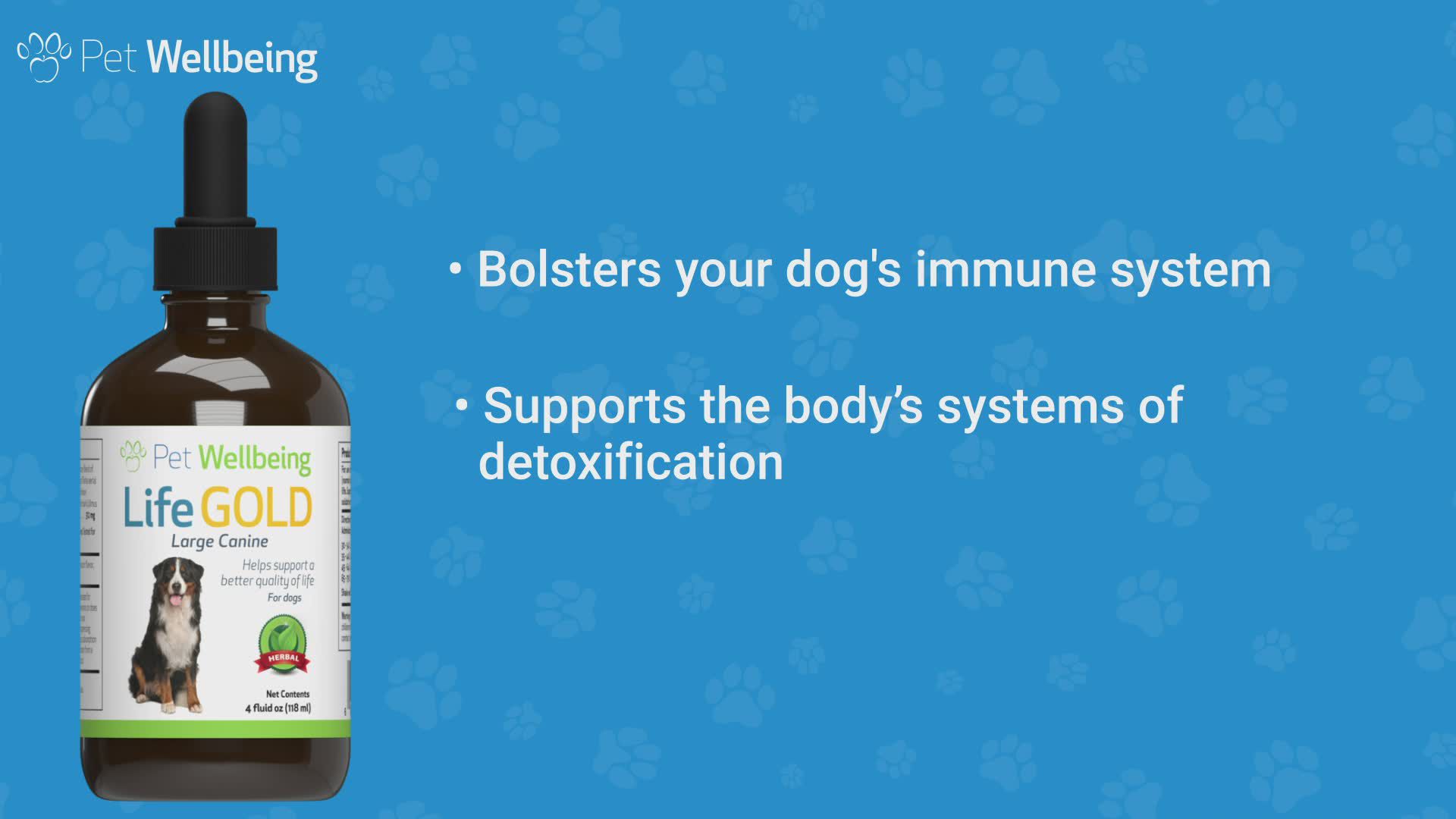 Life Gold is a proprietary formula developed for dogs when their quality of life has been compromised. More immune system and antioxidant protection may be needed at this time. Dogs with a suppressed immune system can be more at risk for the increased effects of oxidative damage. In the later stages of damage, there may be signs such as weight loss, lack of appetite, weakness, unexplained vomiting, abnormal growths or swellings, and many other symptoms depending on the area(s) affected. If you see any of these symptoms or anything else that concerns you, seek the advice of a veterinarian immediately. With knowledge that draws on both traditional and scientific research of herbs, we have engineered an all-natural extract using herbs from around the world. This product really is GOLD when your pet's quality of life needs support. Life Gold helps to ensure that the body's vital systems of detoxification are working well. The liver, kidneys, bowel, lungs, and skin all work to remove the body's waste products. The herbs in Life Gold also help the lymphatic system, a vital part of the immune system. Life Gold supports your pet's long-term vitality. Life Gold addresses a growing need to adequately address the effects of free radical activity in dogs, and provides support for antioxidant function in the body and may reduce free radical damage. It is safe to use long-term and effectively helps the body to excrete toxins normally through the channels of elimination. Even if your pet is healthy, Life Gold can be used once or twice each year, to ensure that the body's detoxification systems are working optimally and to help reduce oxidative stress. This provides a foundation for long-term health.