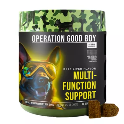 Nature's finest ingredients are at the heart of Operation Good Boy's MULTI-FUNCTION SUPPORT SOFT CHEW. We've carefully selected elements like glucosamine from shellfish, MSM, turmeric-derived curcuminoid, and wild Alaskan salmon oil, among others. These natural ingredients work in harmony with your dog's body, promoting health and vitality the way nature intended. At Operation Good Boy, we're inspired by the loyalty and dedication exhibited by our brave veterans and their faithful canine companions. Our mission is to strengthen this bond by providing superior quality, military-inspired pet products that promote better health and well-being for the pets of our heroes and all Americans.