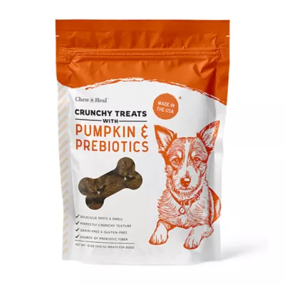 Product Brand & Name: Chew + Heal Crunchy Treats with Pumpkin & Prebiotics
