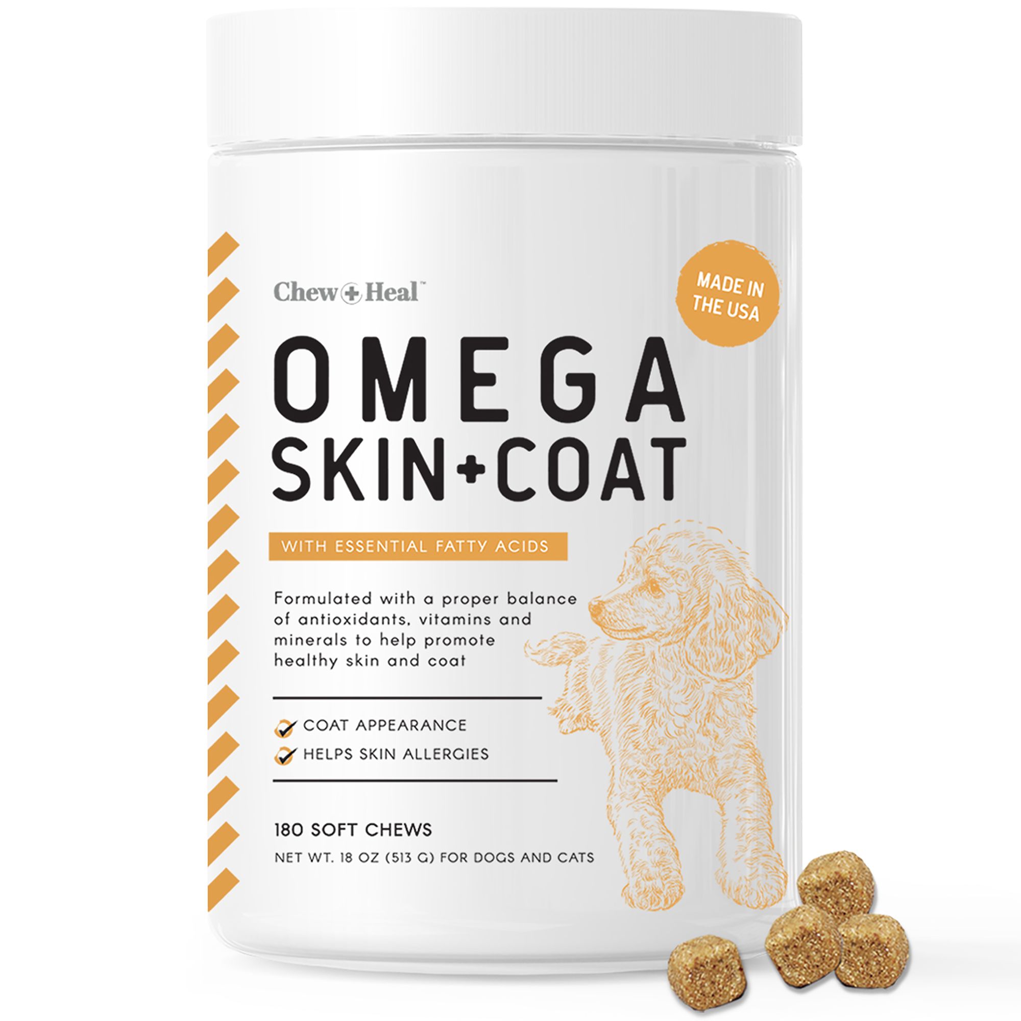 acids and antioxidants to support a luxurious coat and healthy skin. It also