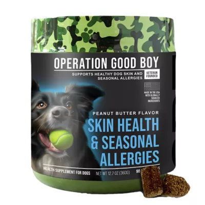 These soft chews from Operation Good Boy promote skin health and support for dogs with seasonal allergies. At Operation Good Boy, we're inspired by the loyalty and dedication exhibited by our brave veterans and their faithful canine companions. Our mission is to strengthen this bond by providing superior quality, military-inspired pet products that promote better health and well-being for the pets of our heroes and all Americans.