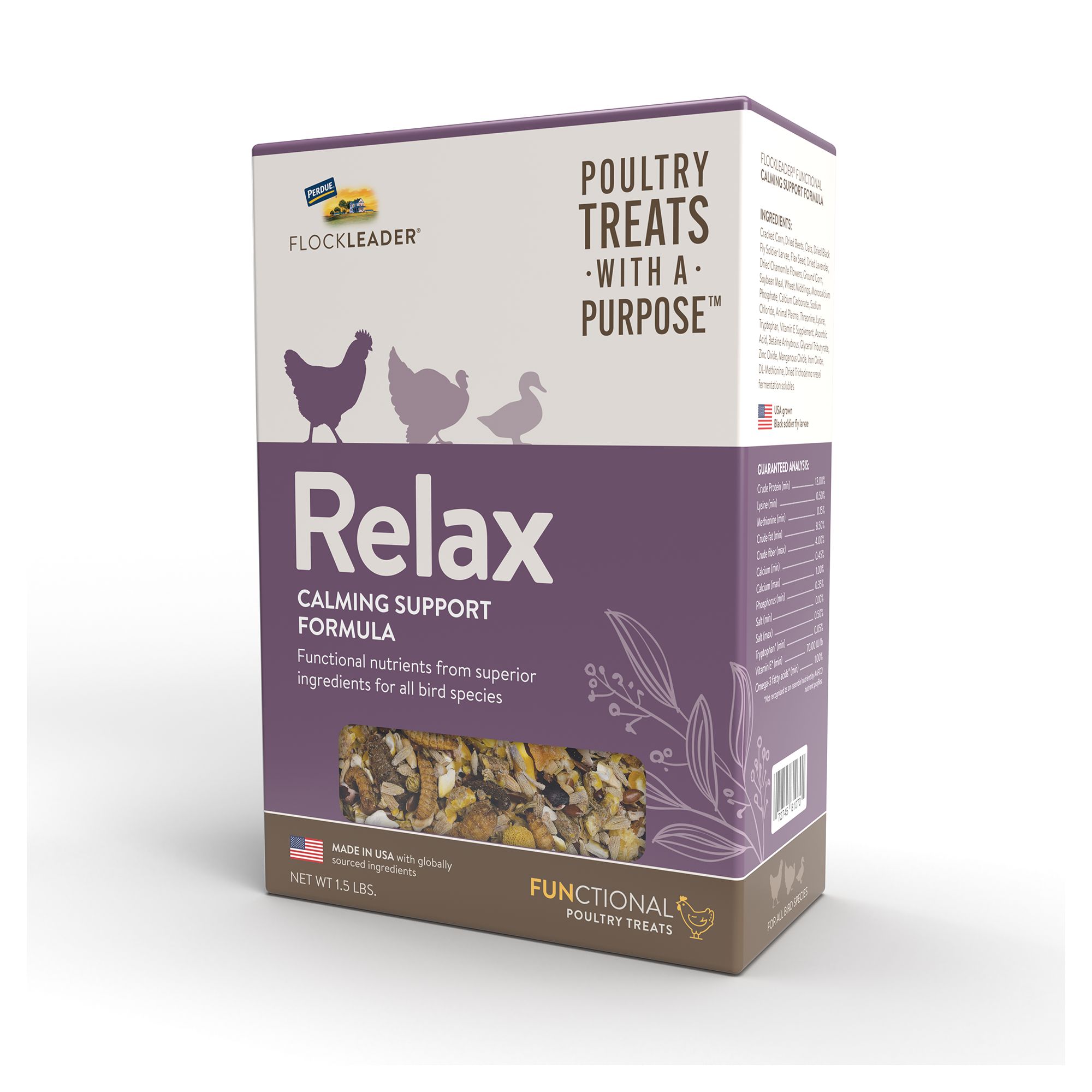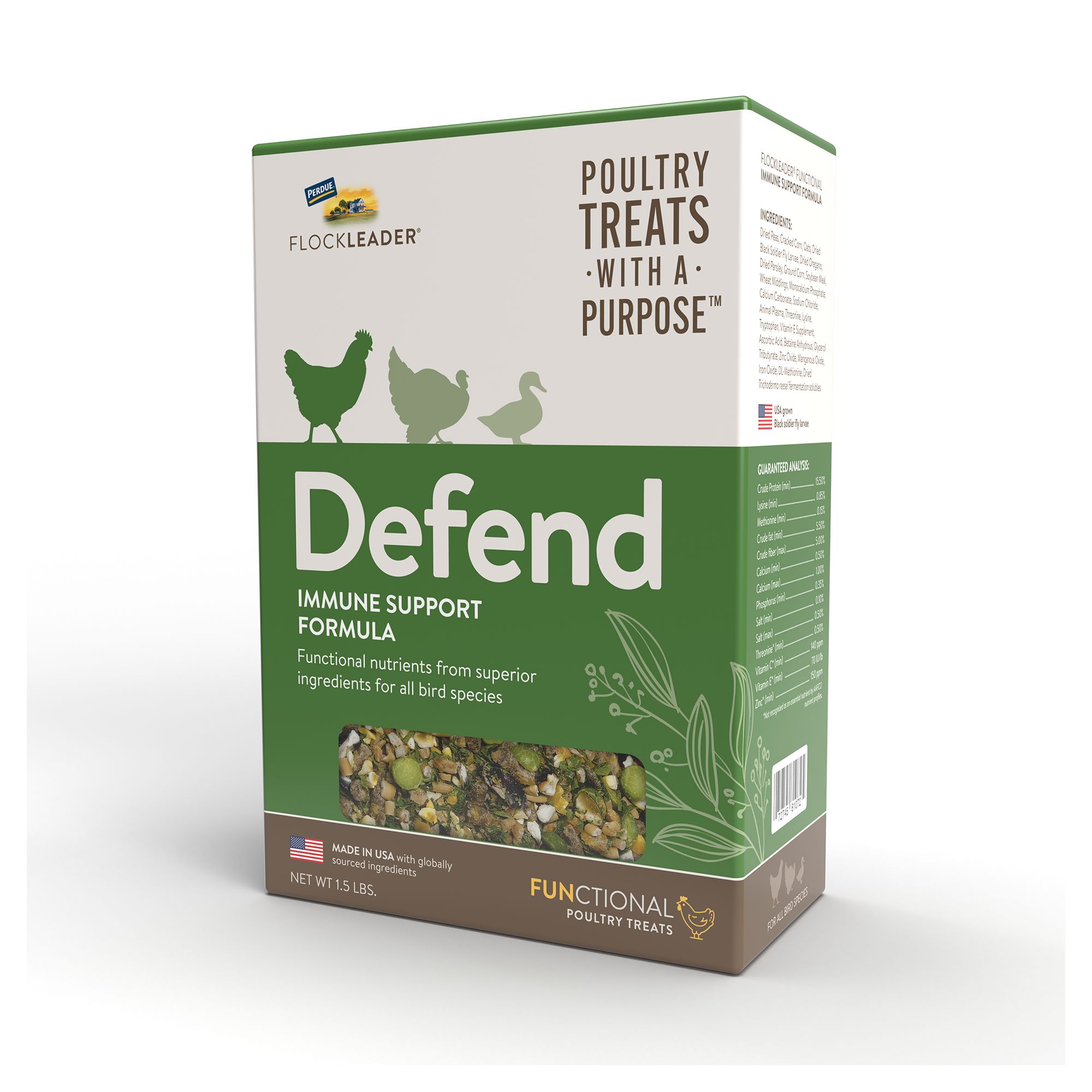 Features & Benefits: • SUPPORT EGG PRODUCTION AND QUALITY: Enhance is formulated to help birds replenish key nutrients like calcium needed for egg production and improve overall egg quality for all poultry species 8 weeks of age and older.• POULTRY TREATS WITH A PURPOSE: Feed as a rewarding and delicious treat or mix with feed to give variety, fun, and additional functionality to your flock's diet.• USA–GROWN, BLACK SOLDIER FLY LARVAE: Enhance is proudly made in United States with USA–sourced black soldier fly larvae. They are 50x higher in calcium and more sustainable than mealworms.• INGREDIENTS TO SUPPORT EGG QUALITY: Enhance is made with Vitamin A rich marigold and carrot to enhance the egg yolk, omega–3 rich flax seed to enrich the egg yolk, nutrient enhancing enzymes, an essential amino acids and minerals.• EXCLUSIVE FUNCTIONAL PELLET: Enhance is made with an exclusive functional pellet containing key nutrients like the amino acid lysine to support egg production and increase egg weight, zinc to support calcium metabolism and keep bones strong while producing eggs, and manganese to support fat metabolism and liver function. •SAFE FOR ALL POULTRY SPECIES: Feed 1–2 tablespoons per bird or add