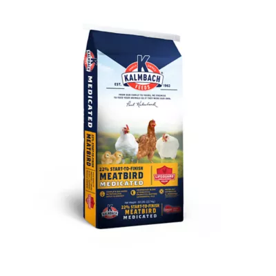 Kalmbach Feeds Start to Finish Meatbird feed is a complete feed for starting and growing broilers, replacement pullets, and turkeys. This feed supports the digestive system as well as immune health for chickens and turkeys.