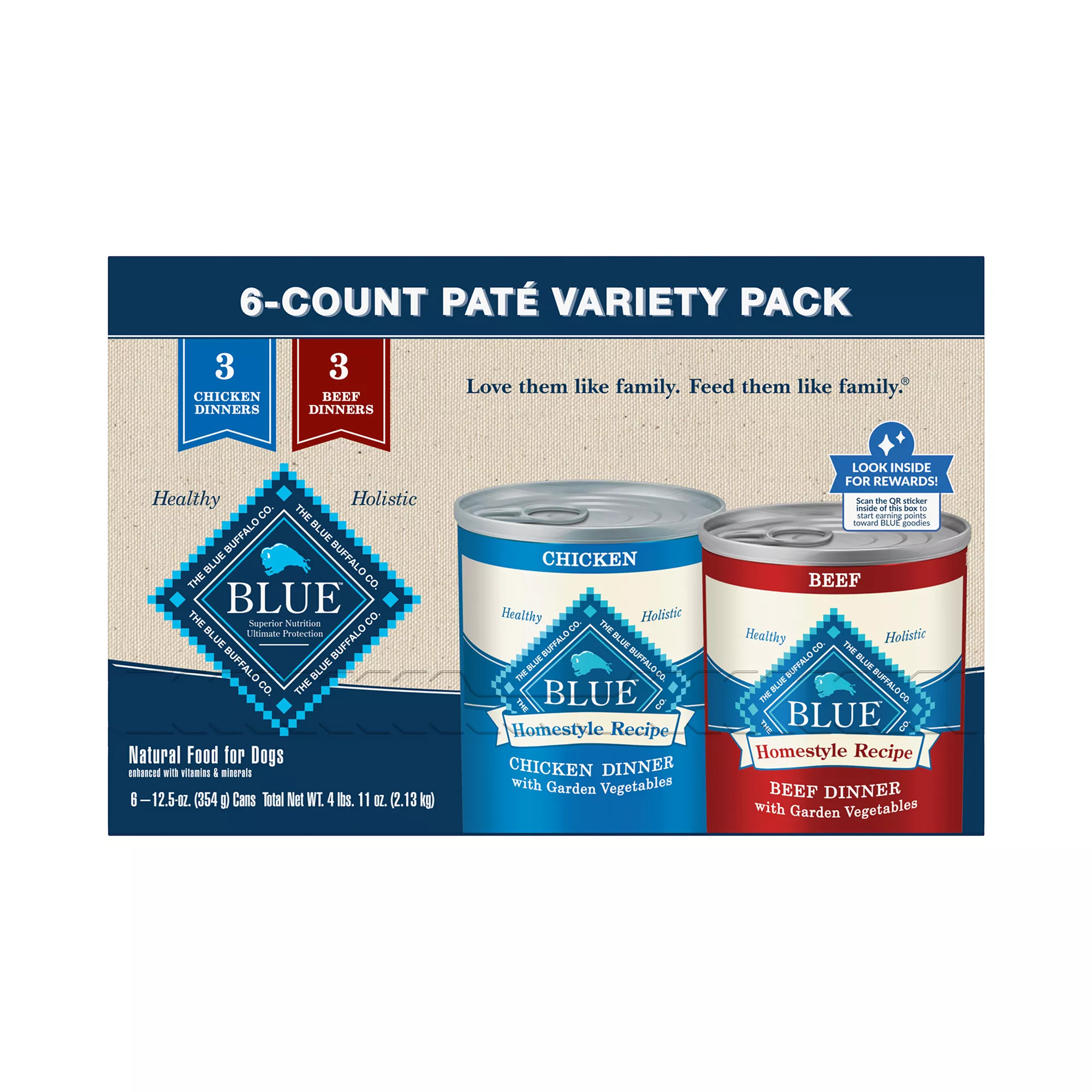 Blue Buffalo Homestyle Recipe Variety Pack Adult Dog Wet Food - Chicken & Beef, 12.5 oz, 6 Count